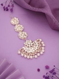 Half Moon Shape Kundan Maang Tikka & Mendi Gold Earrings